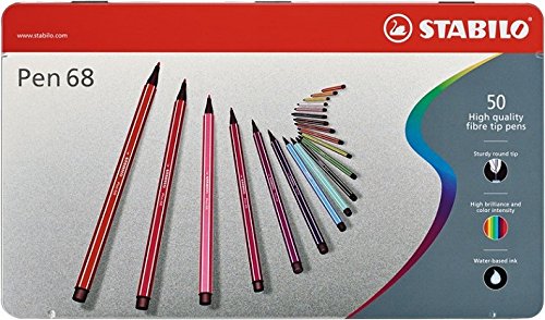 SET OF 50 COLORS IN A METAL TIN - Start coloring now in a whopping 50 colors of Pen 68 Coloring Felt-tip Marker Pen, in a metal tin.