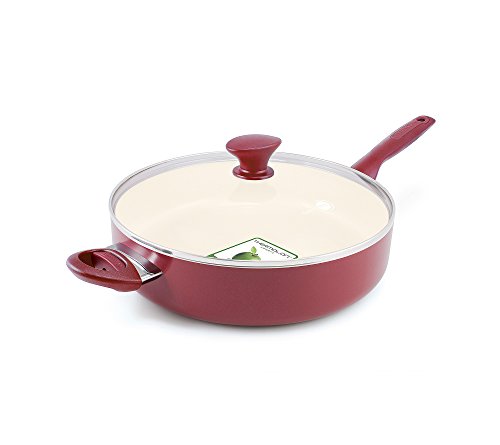 Product Description Web exclusive! Experience cooking convenience when you have a GreenPan Rio ceramic 5-qt. saute pan. Liquids won't spill out thanks to high sides and the pan's large surface area makes it ideal for braising or searing meat, as well as reducing sauces. Other design details include a ceramic nonstick interior, an ergonomic stay-cool handle and optimal heat distribution. This 5-quart saute pan can also be placed in the dishwasher for quick and easy cleanup. 0