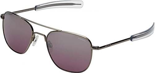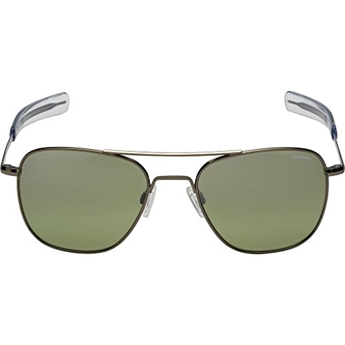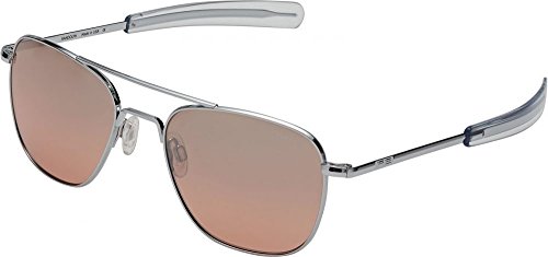 These flagship Randolph™ aviators were originally built for the U.S. Military and surpass rigid standards. Military Issued: HGU4/P, MIL-S-25948. Metal frames and signature bayonet temples designed for military pilots. Mineral crown glass lenses provide 98%-100% UV protection. Brand logo at upper left lens. Adjustable silicon nose pads. Protective case included. Made in the U.S.A. Measurements: Temple Length: 140 mm Frame Width: 140 mm Lens Height: 45 mm Weight: 1.35 oz Lens Width: 54 mm Bridge: 17 mm This product may have a manufacturer's warranty. Please visit the manufacturer's website or contact us at warranty@support.zappos.com for full manufacturer warranty details.Feature