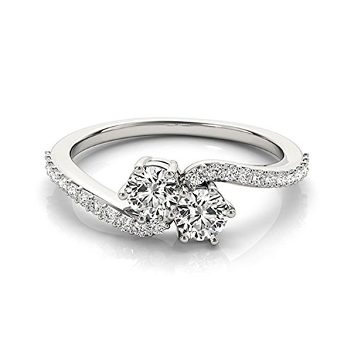 -. Title : 14k White Gold Round-cut Two-stone Diamond Ring (1/2 cttw, J-K, I1-I2) Size 4-9