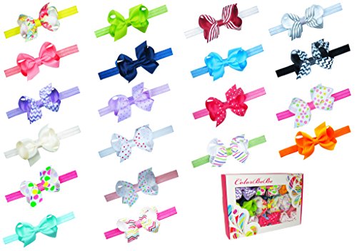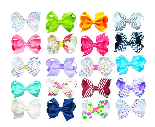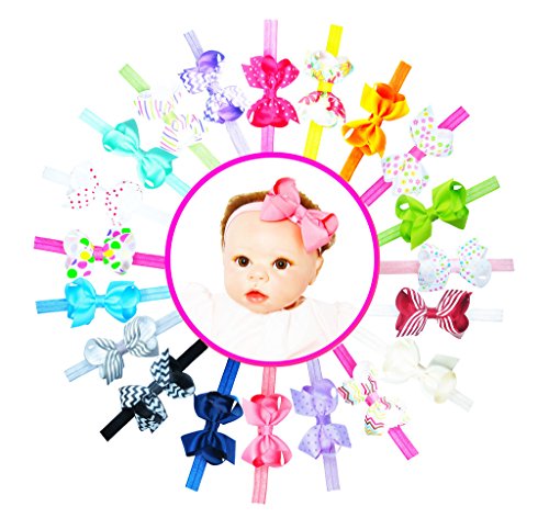 Includes 20pcs soft & stretchy headbands & 20pcs 3" handmade Grosgrain Hair Bow Clips. Headbands and clips are interchangeably and can be worn separately.