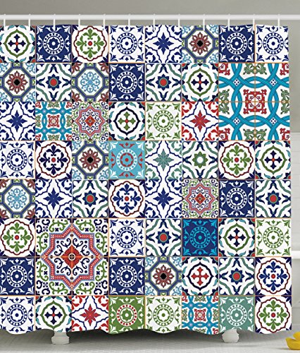 Patchwork Decor Theme Mosaic Ceramic View Moroccan Tile Traditional Bath Decorations Art Print Eastern Style Polyester Fabric Shower Curtain Navy Green Burgundy Red Brown Teal
