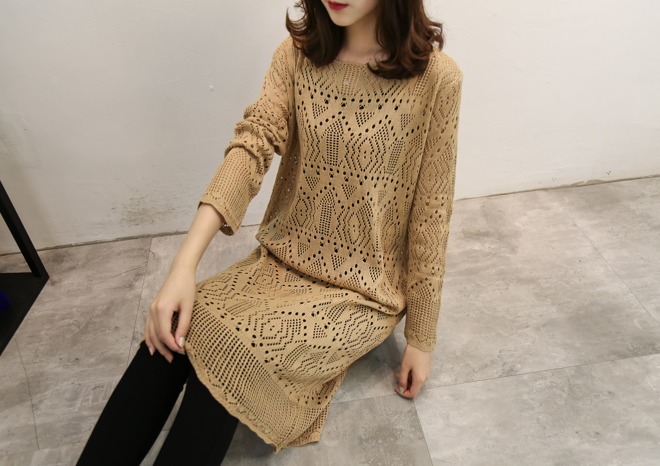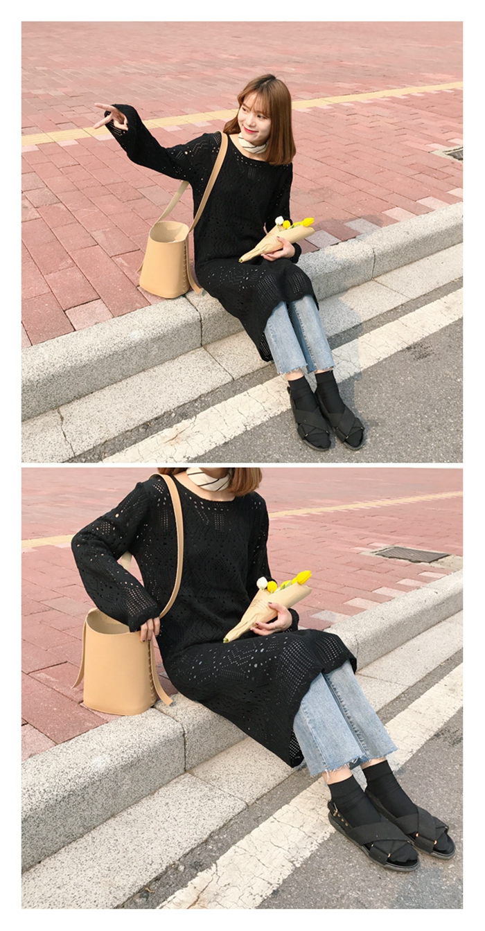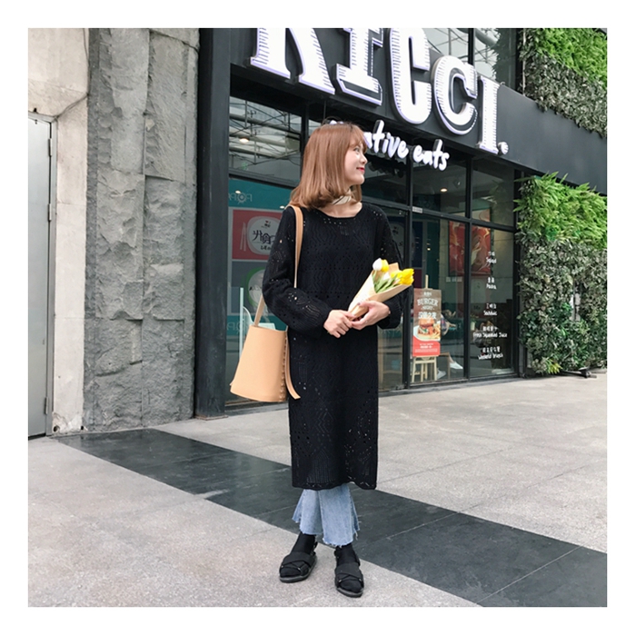 Autumn Punching Long Knit Dress Long Sleeves 20s 2017 Fashion Made J