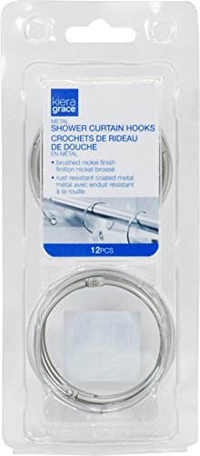 Kiera Grace Circular Metal Shower Curtain Rings, Nickel Finish - Set of 12