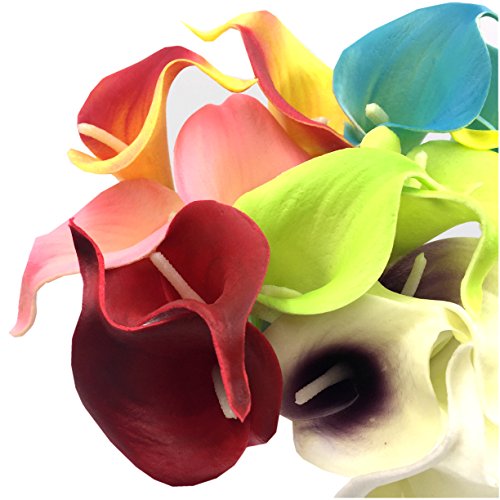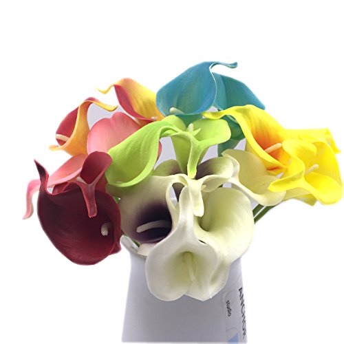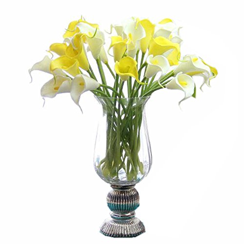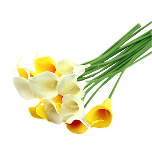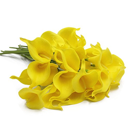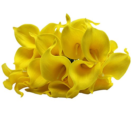 M2cbridge Pack of 12 Calla Lily Bridal Wedding Bouquet Real Touch PU Flowers (Yellow)
