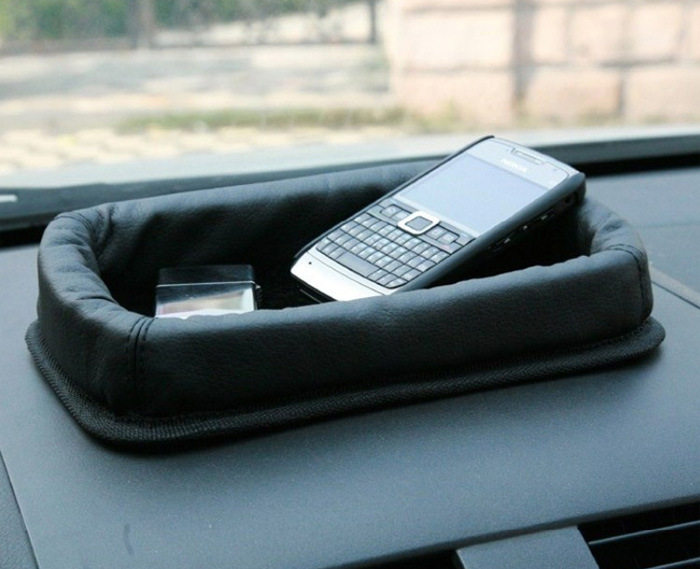【产品特点】1、高档PU材质制成,防水,坚韧。2、手感细腻柔和,尤其内部采用皮绒制成,手模触感柔软光滑,并发出黑亮的色感。3、底部采用高档防滑面料,无需粘贴即可牢牢贴住仪表台的光滑位置。4、可以放入手机、名片、小型香水、钢笔、钥匙等多样物件,方便实用