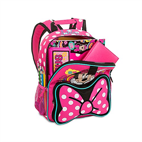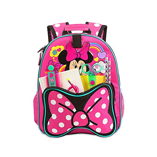 -. Brand : Disney -. Color : Multicoloured -. Department : girls -. EAN : 0701851026637 -. Feature : Junior sized backpack / Raised vinyl applique / Adjustable shoulder straps / 600 denier polyester / polyvinyl chloride / polyethylene foam / polypropylene fibers / 12'' H x 9 1/2'' W x 4'' D -. Label : Disney Store -. Manufacturer : Disney Store -. Model : 2725047150299 -. PackageQuantity : 1 -. ProductGroup : Apparel -. ProductTypeName : LAGE -. Publisher : Disney Store -. Size : One Size -. Studio : Disney Store -. Title : Disney Store Minnie Mouse Junior Backpack - School Supplies - Not Personalizable -. UPC : 701851026637