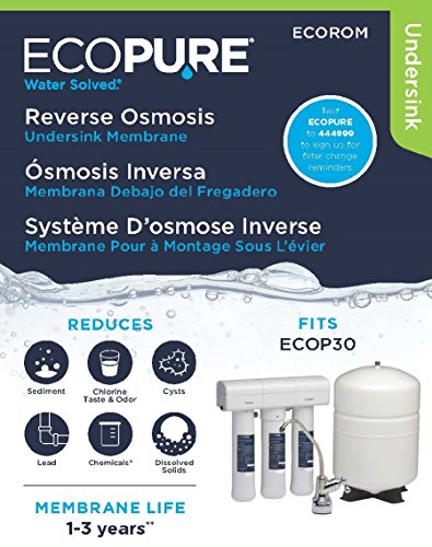 EcoPure Reverse Osmosis Under Sink Replacement Water Membrane (ECOROM) | NSF Certified | Fits ECOP30 System | 1-3-Year Filter Life
