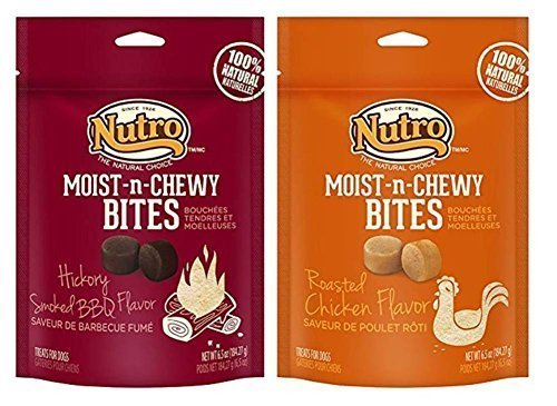 -. Title : Nutro 100% Natural Moist-n-Chewy Bites Training Treats For Dogs 2 Flavor Variety Bundle: (1) Nutro Bites Hickory Smoked BBQ Flavor, and (1) Nutro Bites Roasted Chicken Flavor, 6.5 Oz. Ea. (2 Bags)