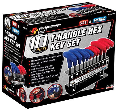 Performance Tool W80275 Metric T-Handle Hex Key Set, 10-Piece