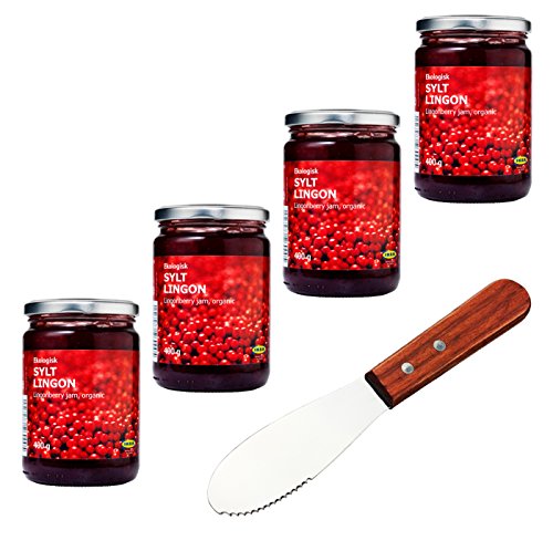 IKEA Organic Swedish Lingonberry Preserves | Jam - Bundle - With Signature Home Kitchen Spreader Knife - Pack of 4
