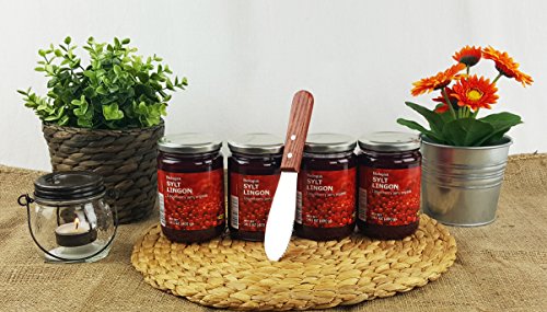 IKEA LINGONBERRY PRESERVES EXTRAVAGANZA - This is a four pack of Sylt Lingonberry Jam and Includes a 7.5" Stainlesss Steel Serrated Spreader Knife. The firm blade allows you to easily slice through bread and spread Lingonberry to your heart's content.