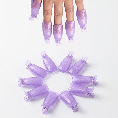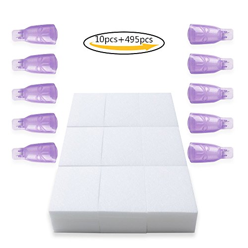 Teenitor [UPGRADE] Nail Cap Clips UV Gel Polish Remover Wrap Purple 10 Pack with 495 Pack Lint Free Nail Wipe Cotton Pads