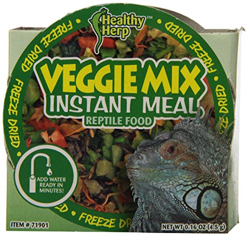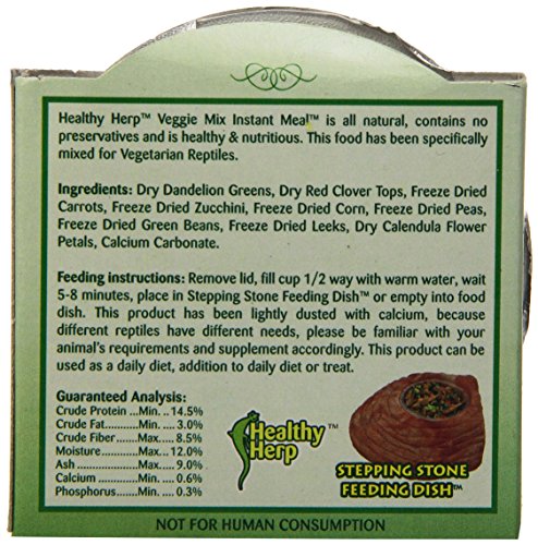 San Francisco Bay Brand healthy herp veggie mix instant meal is all natural, contains no preservatives and is healthy and nutritious. This food has been specifically mixed for herbivorous and omnivorous reptiles. Veggie mix when rehydrated returns to its natural state making it irresistible to reptiles. It contains dry dandelion greens, a natural source of calcium and dry calendula flower petals to enhance bile production and assist digestion. This healthy meal is recommended for iguanas, bearded dragons, chuckwallas, uromastyx, tortoises, box turtles, blue tongued skinks and as a gut load for crickets. Available in a large pack weighing 0.16-ounce.Feature