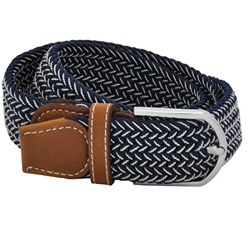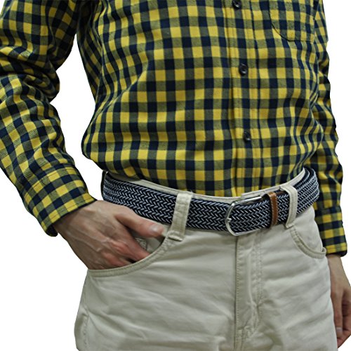 Men Elastic Fabric Woven Stretch Belt Braided Webbed Waistband with Faux Leather *These belts come in a variety of colors and patterns to help you get the perfect match with all your different wardrobe needs.