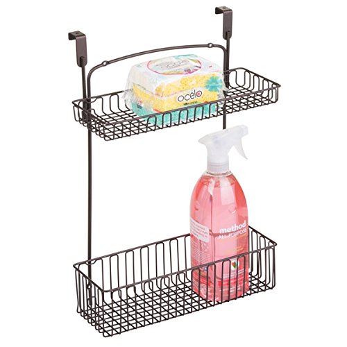 Product Description The mDesign Storage Organizer helps organize sponges, scrubbers, brushes, aluminum foil, sandwich bags, plastic wrap, cleaning products and more. Simply hang from a cabinet door for instant storage. 0