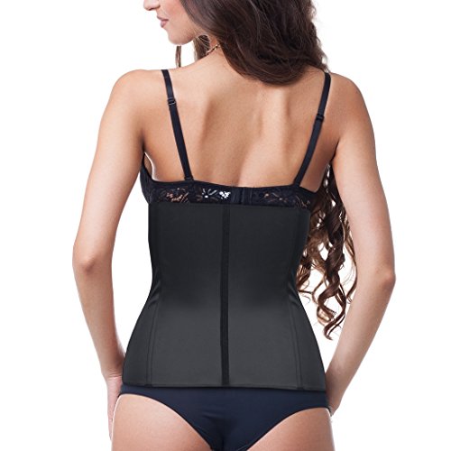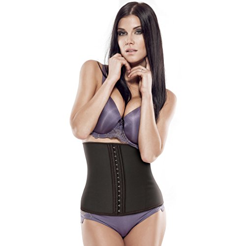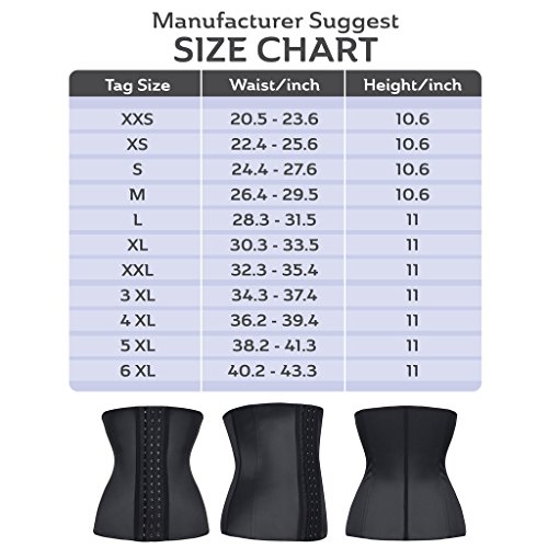 -. Feature : Waist Trainer constructed with latex to create thermal action that stimulates fat burning, weight loss, removal of toxins, lined with soft, gentle cotton for maximum comfort / Designed with a higher rising waist in underbust style to provide optimal support for everyday wear, works great with long and short torsos / Built with 9 spiral steel boned construction, it offers high compression yet is flexible and durable enough to allow exercising and working out / 3 hook-and-eye closures allow you to size the garment down as you shape your waist size and become trimmer / To size please measure your waist in inches and determine the correct size; your natural waistline is the narrowest part of your midsection, which is usually three fingers above your belly button -if you are between sizes, please size up for best fit