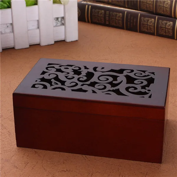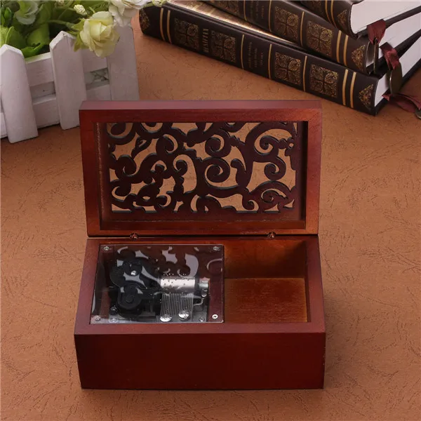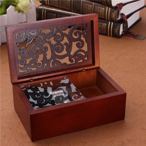 Newest !! Vintage Hollow Out Wind Up Music Box Musical Finished Wooden Open Stylish Pattern Lid Jewel Crafts