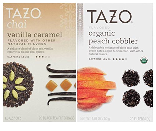 Title : Tazo Flavored Black Tea 2 Flavor Variety Bundle; (1) Tazo Organic Peach Cobbler, and (1) Tazo Chai Vanilla Caramel, 1.76-1.8 Oz. Ea.