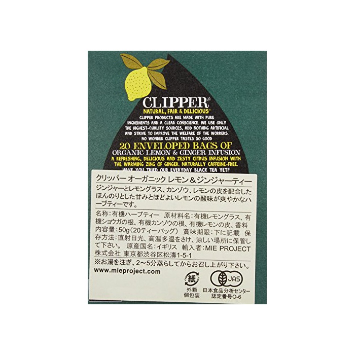 원본상품명: クリッパ? レモン&ジンジャ?ティ? 50g (20×2.5gティ?バッグ)