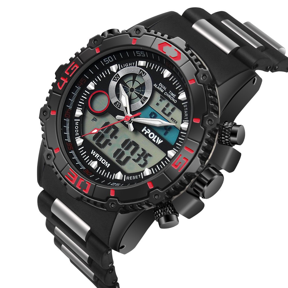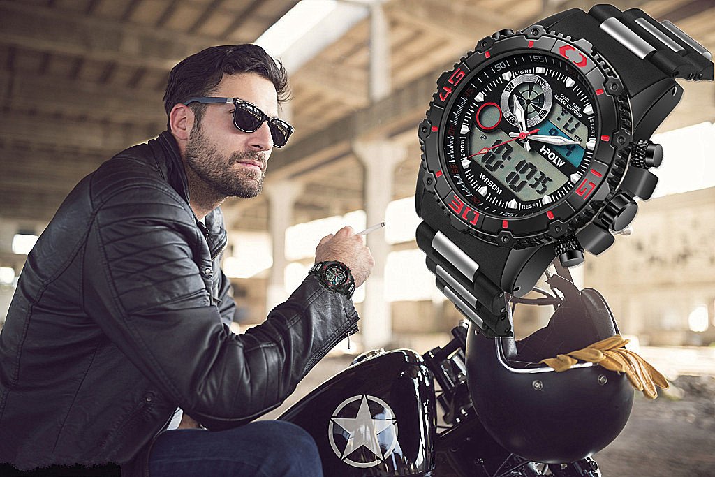 Premium model with analog and digital movement on the big face of 56 mm in diameter.