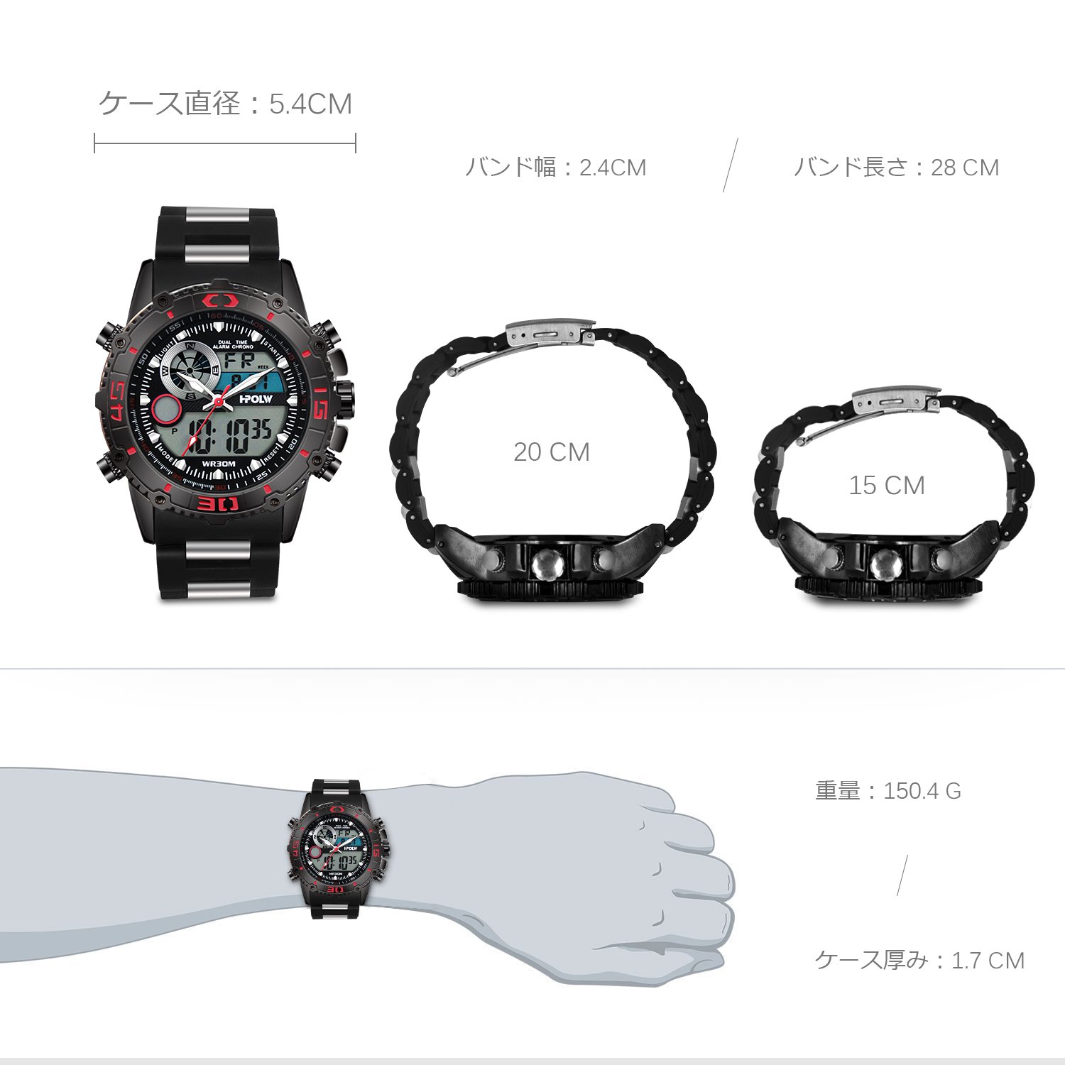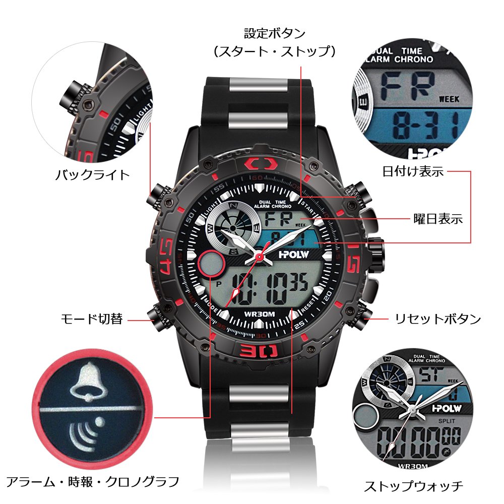 Of course, the digital part also has date / day calendar, stopwatch, alarm function!
