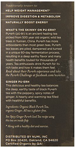 Title : Numi Organic Ginger Pu-erh Tea Bags, Full Leaf Black Pu-erh Tea Blend, 16-Count non-GMO Tea Bags