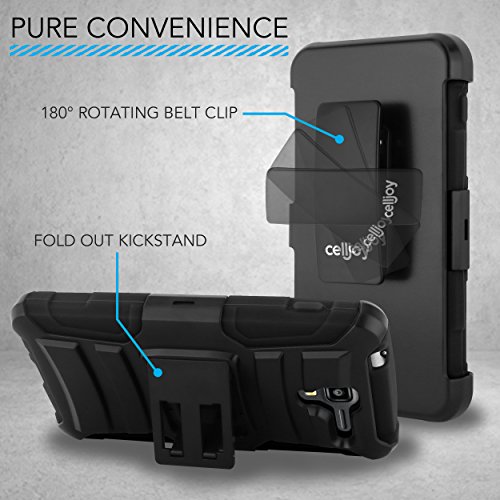 -. Title : Kyocera Hydro View / Hydro Reach Case, CellJoy [Ultra Red Hybrid] **ShockProof** Reinforced Impact Bumper [Heavy Duty] Protection Cover **Kickstand** [Locking Swivel Belt Clip Holster Combo]