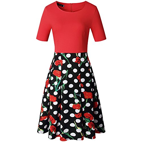 Features:Crew Neck,Short and Long Sleeve Optional.Hidden Zipper At The Back,Patchwork/Fit And Flare Work Dresses For Women,Super Flattering.Deep Pockets Easily To Keep Your Smartphone /Key or Other Small Items Comfortably