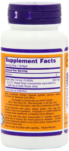 -. Binding : Health and Beauty -. Brand : NOW -. Label : NOW -. Manufacturer : NOW -. PackageQuantity : 1 -. ProductGroup : Health and Beauty -. ProductTypeName : HEALTH_PERSONAL_CARE -. Publisher : NOW -. Studio : NOW -. Title : Now Foods Royal Jelly