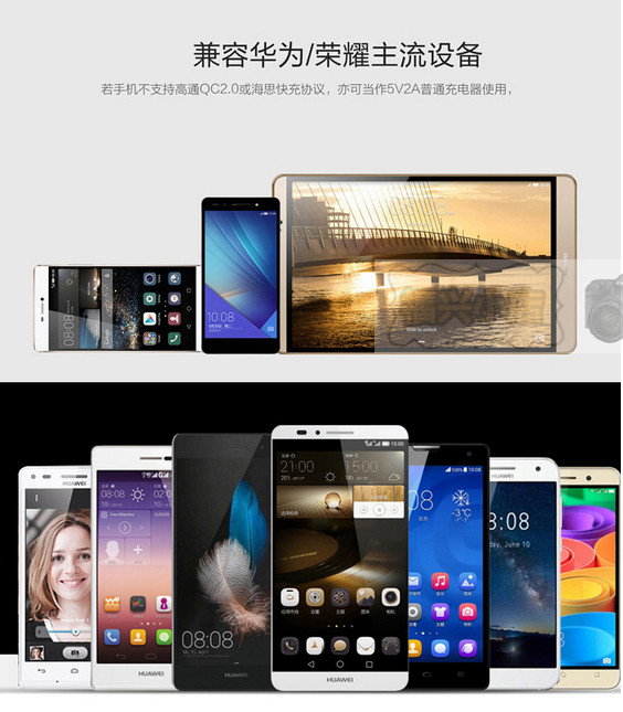 当您的手机电量非常低时、QC2.0协议的 12V会自动为您的手机快速充电、而到达40-50 则转为9V 快充,一直到充满电,而不支持快充的手机、则提供5V-2.5A的充电速度。