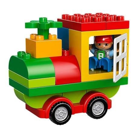 -. Title : L.E.G.O All-In-One Box of Fun 65-Piece Duplo Bricks Building Set, Wagon Base, 2 Window Elements and Dog, Multicolor