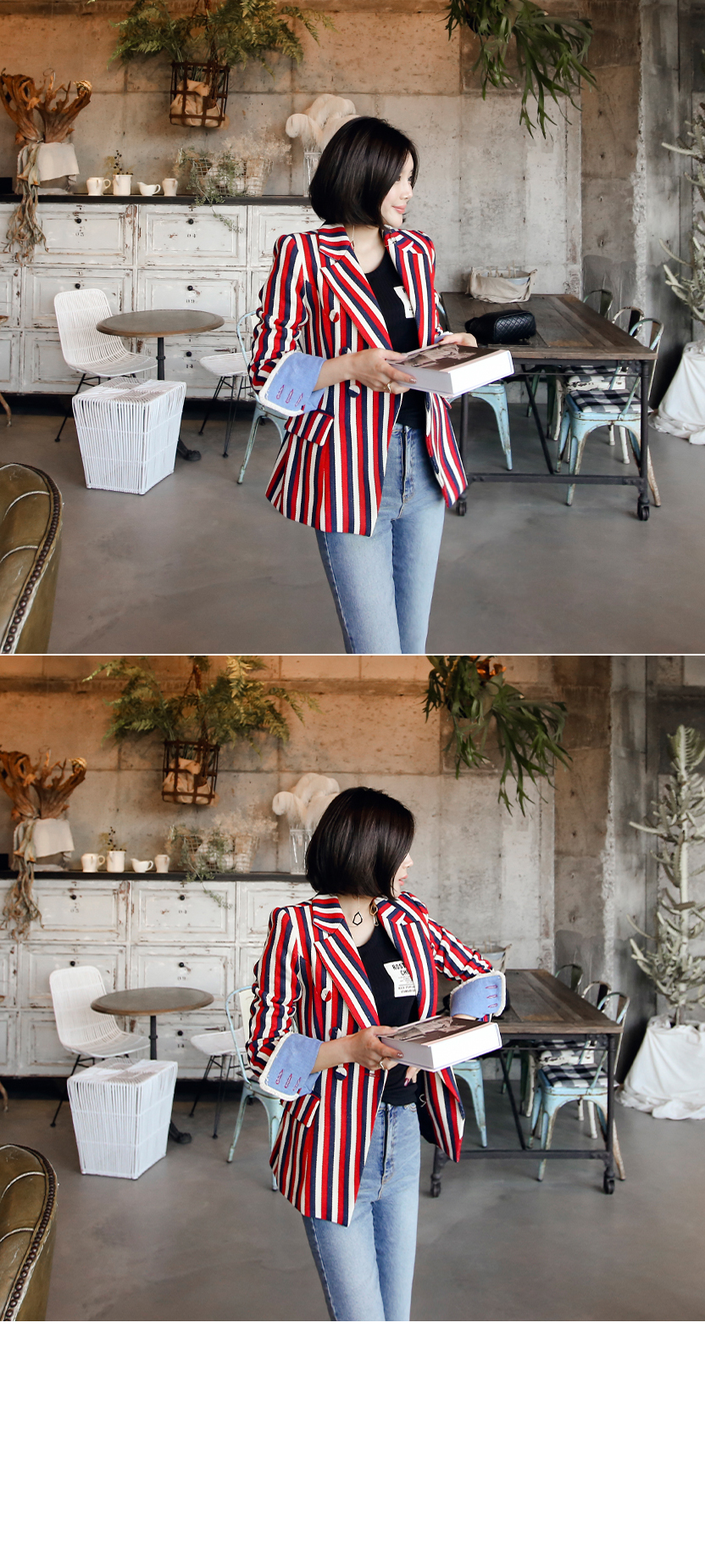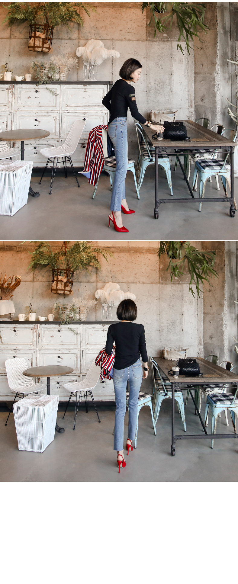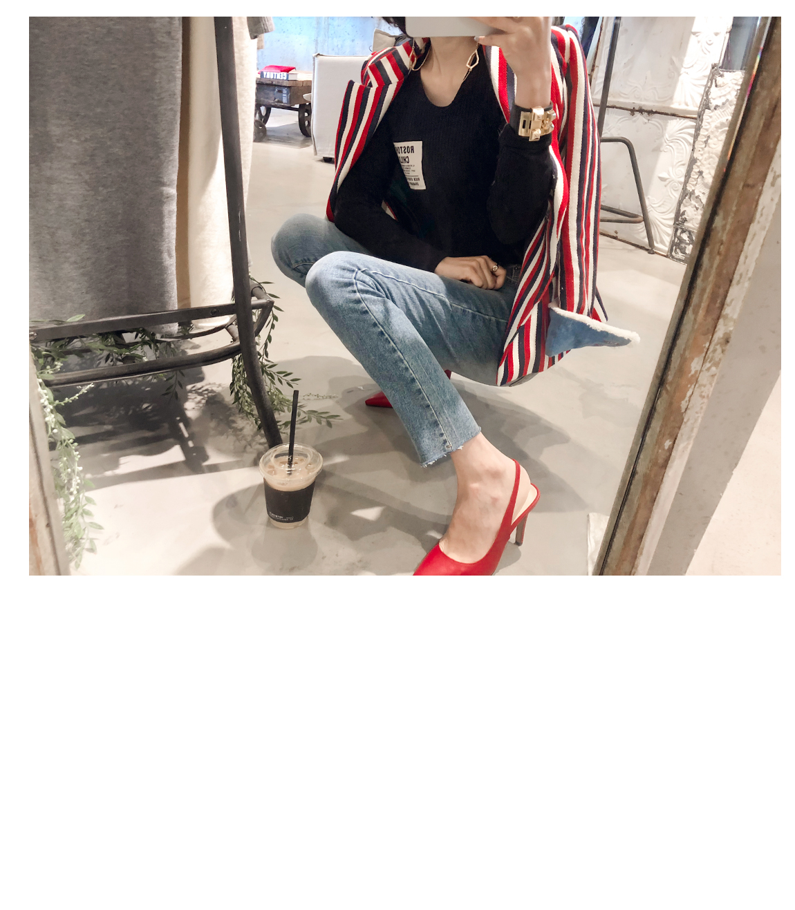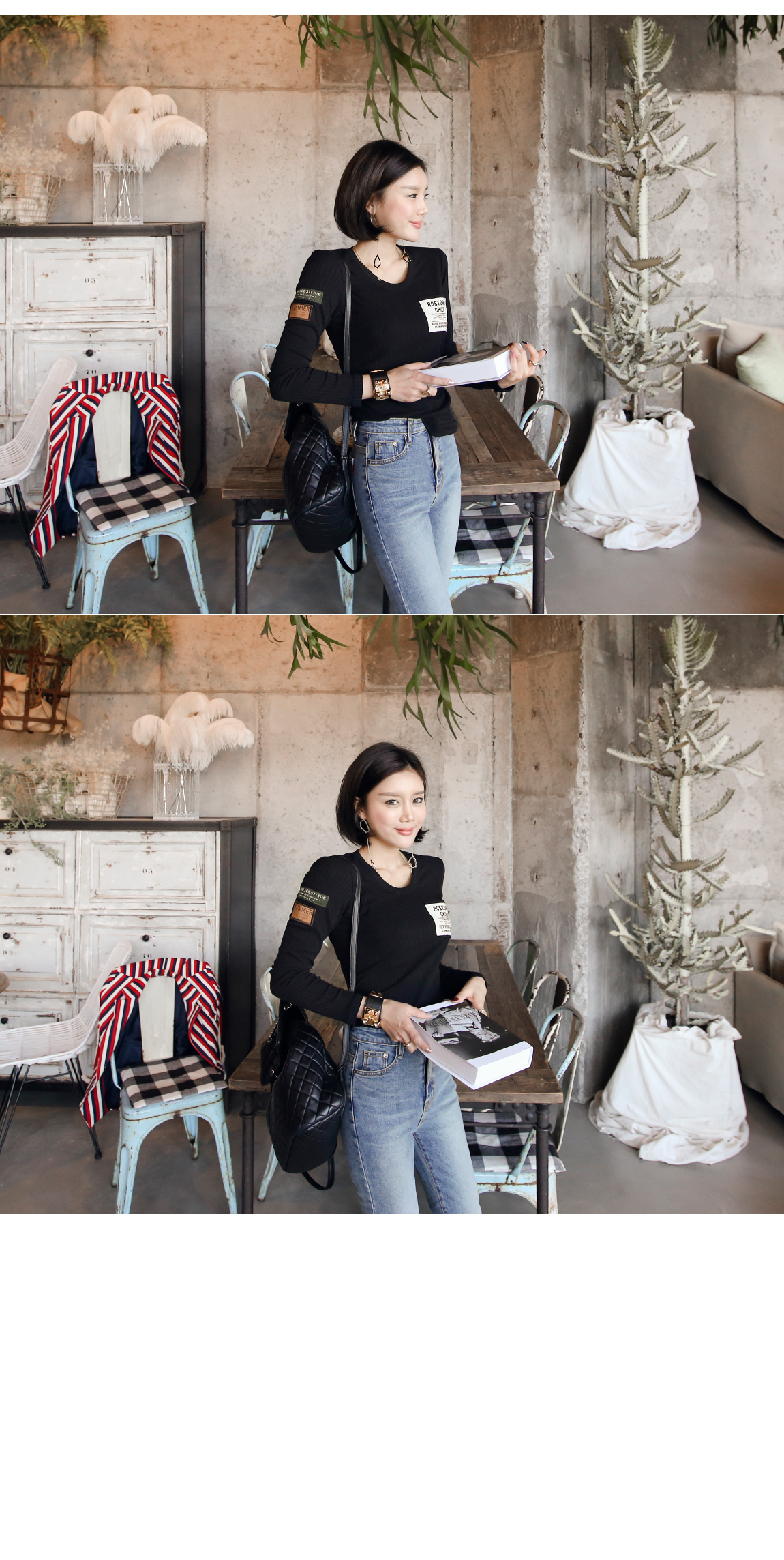 사이드와 프론트의 배색 패치 디테일로 유니크한 포인트를 주었어요