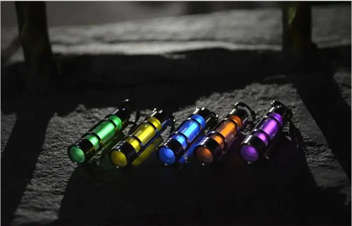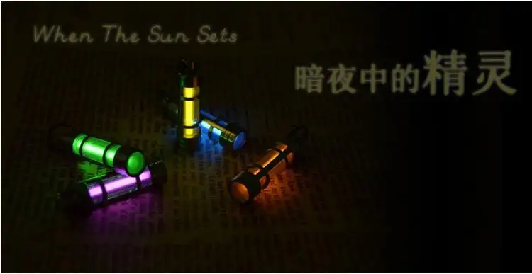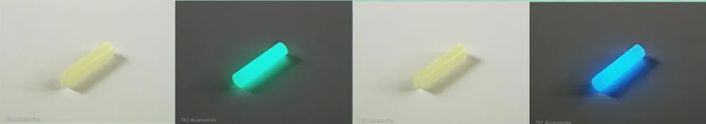 The following figure is the fluorescent stick sunshine environment and dark light environmental effects contrast (left green, right blue)