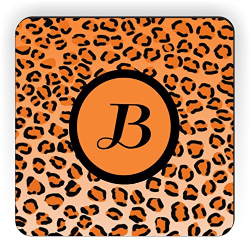 Rikki Knight Letter "B" Initial Orange Leopard Print Monogrammed Design Square Fridge Magnet