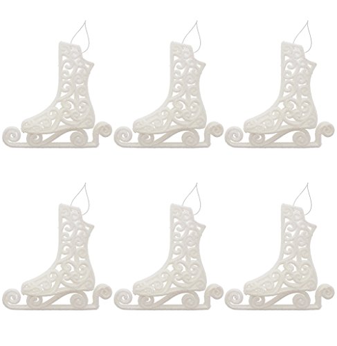 - Includes 6 Piece Set of White Elegant Retro Glitter Ice Skates Ornaments with Silver Hanging String