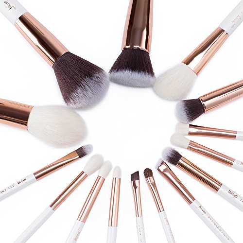 Jessup Brand 15pcs Pearl White/Rose Gold Makeup Brushes Make up Tool Kit Beauty Professional Eyeshadow Power Lipstick Blending Cheeck Cosmetic Brushes...