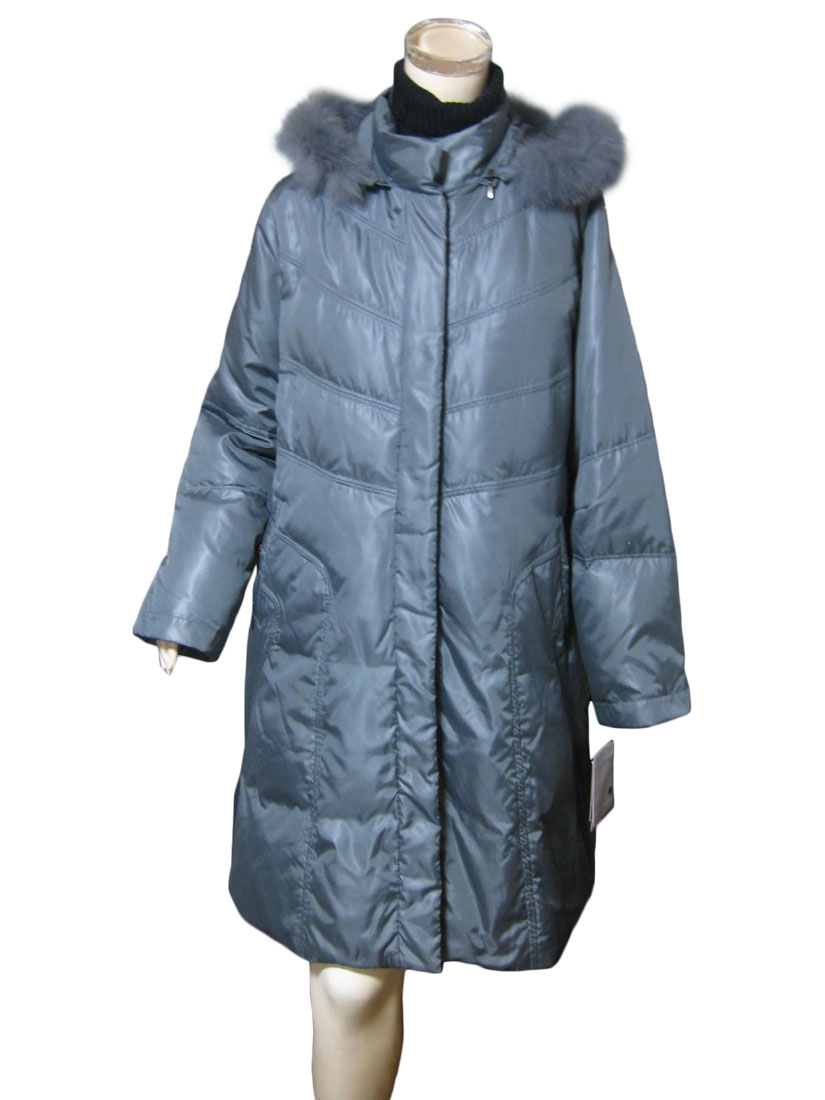 | 素材 | (本体)ポリエステル100% (リブ部分)アクリル 100% (裏地)ポリエステル100% (ファー部分)ブルーフォックス (詰物)ダウン70% フェザー30% (中綿:前立て・ポケット口部分)ポリエステル100% |