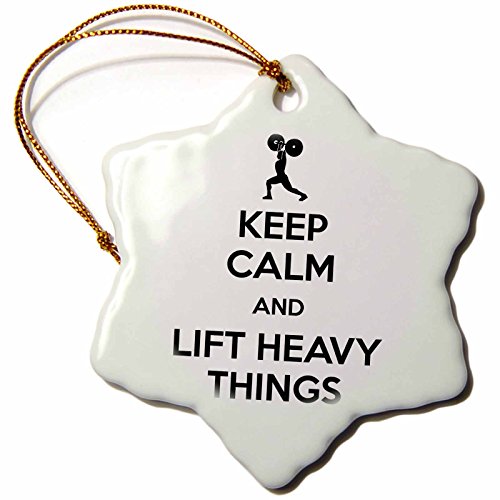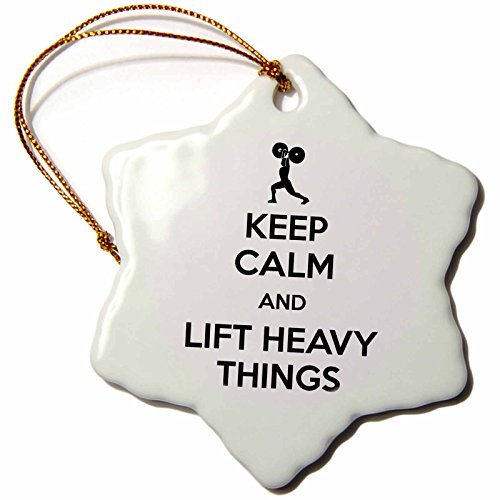 3dRose orn_128171_1 Keep Calm and Lift Heavy Things Gym Humor Working Out Weight Lifting Snowflake Porcelain Ornament, 3-Inch