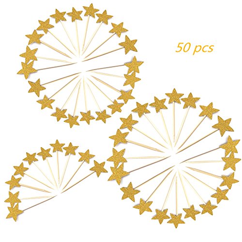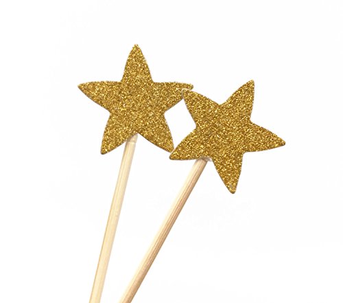 - Package includes 50 glitter gold star cupcake picks; Materials: bamboo toothpick, hight quality cardstock with a glitter paper.