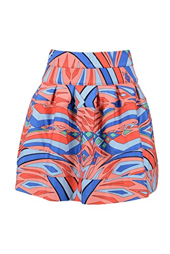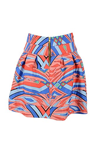 Printed skirt in coral orange, peach, blue, green and black