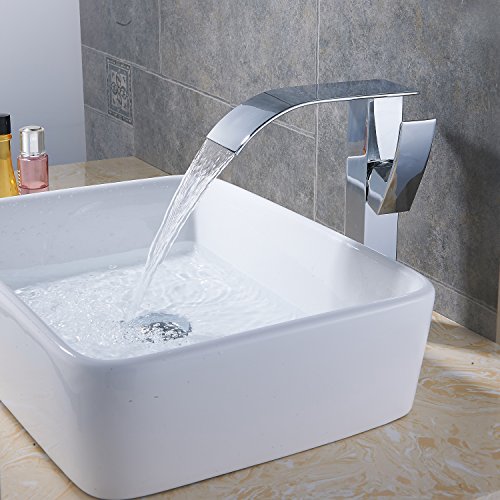Beati Faucet Modern Widespread Waterfall Spout Bathroom Vessel Sink Tall Faucet, Chrome