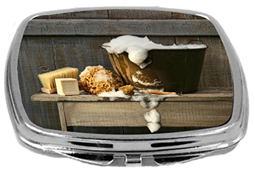 Rikki Knight Compact Mirror, Old Wash Tub with Soap on Bench, 3 Ounce