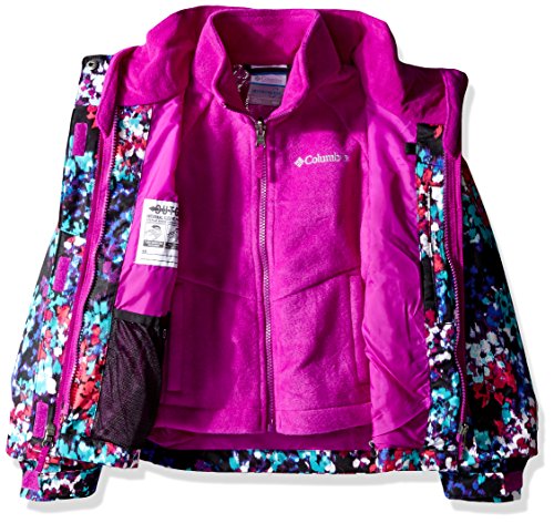 The variable performance of the Bugabooâ"¢ Interchange Jacket will have him cruising in comfort. OUTGROWNâ"¢ system adjusts with your growing child to extend the life of the garment. Three-point, zip-out Interchange System.Outer Softshell Jacket Omni-Techâ"¢ technology:• Waterproof and windproof with critically sealed seams.• Highly breathable, three-layer bonded design.• Lightweight design reduces bulk. Removable storm hood with brim and drawcord. Fleece-lined stand collar. Hook-and-loop flap over full zip. Hook-and-loop flap chest pockets. Inner zip pockets and mesh goggle pocket. Zip hand pockets. Hook-and-loop cuffs. Droptail hem with toggled drawcord. Body and Lining: 100% nylon. Machine wash and tumble dry.Inner Jacket Omni-Heatâ"¢ reflective lining:• Metallic lining reflects body-generated heat for improved warmth retention.• Backing dissipates excess heat.• Membrane comprises 65% of lining for high breathability. Soft, plush Dotswarm fleece. Stand collar. Full-length zip. Kangaroo hand pockets. Straight hemline. 100% polyester. Machine wash and tumble dry.Feature