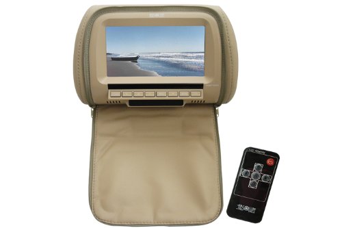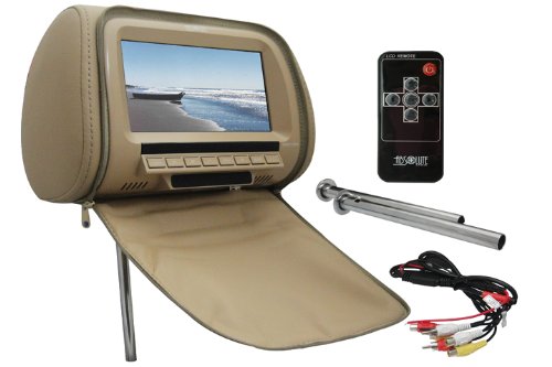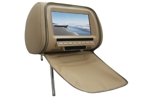 Absolute COM-712IRC 7.5-Inch Headrest Pillow with Zipper Cover and TFT/LCD Color Monitor with Built-In IR Transmitter (Tan/Cream)