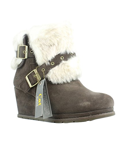 Studio : Caterpillar Publisher : Caterpillar Binding : Apparel Product Description With the new CAT Boisterous women's fur boot you'll turn heads all winter long! Incredibly stylish, but designed with your comfort in mind, the new Boisterous is crafted with a suede and faux fur lining. With a beautiful wedge and decorative side buckles that gives it a subtle feminine touch, it features a microfiber sock liner that will allow you to feel comfort and warmth all day long. With a T1162 rubber outsole as well as a cement construction, there's not elements this boot cannot overcome! So feel safe while enjoying the best of stability and looking remarkably fashionable this winter with the new CAT Boisterous women's fur boot! 0