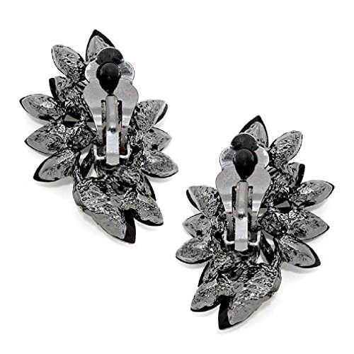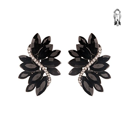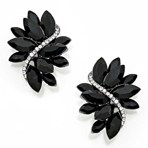 Elegant big black and clear cluster statement clip on earrings, dramatic stylish for any occasion.