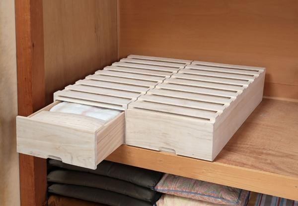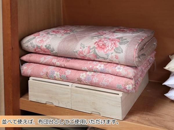 | 押入れの奥までたっぷり収納できる桐製の収納ケースです。重ねても並べても使用できるので、押入れ内のデッドスペースも有効活用できます。本体上部はスノコ状で、上にお布団などを置いても湿気にくい構造になっています。完成品でのお届けですので、届いたらすぐにお使いいただけます。 |