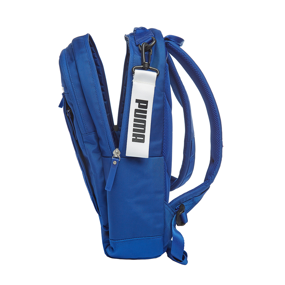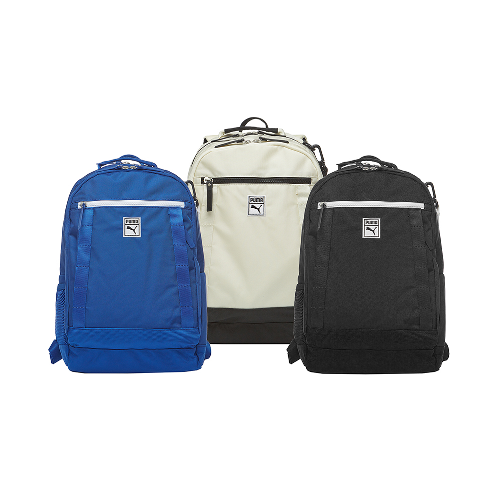 SS19 신학기를 준비하며 푸마에서 출시한 백팩 컬렉션.라운드 형태의 웨빙 포인트가 들어간 가벼운 남녀공용 백팩.- 앞쪽에 분리된 지퍼포켓으로 수납 용이- 좌측 사이드 포켓은 메쉬포켓으로 물병 등 수납 가능.- 가방 바닥, 등판에 보강재를 넣어 안정적인 형태를 유지함.