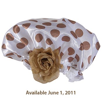 Naturally by Kingsley Shower Cap or Bath Cap - White and Brown Polka Dots w/ Brown Rose